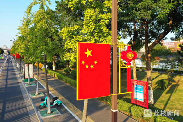 漫步韩信北路,道路两侧已经连成一片红色的海洋。灯杆上鲜艳的五星红旗和写有社会主义核心价值观24字的中国结相互映衬,分外醒目,增添了喜庆和热烈。2021年是中国共产党成立100周年,淮安区通过悬挂国旗、绿地置景、投放电子屏等多种形式,精心布置城乡公共环境氛围。其中,在机关事业单位和18个镇街园区、338个村居社区悬挂国旗16000余面,在景区、游园、沿街商铺等场所悬挂灯笼4000余盏,建设绿植小品10余座,利用40余块电子大屏、1000多个电子条屏投放公益广告,并制作“永远跟党走”群众性主题宣传教育展板、海报,营造庆祝中国共产党成立100周年的浓厚氛围。一个个红色标识、一盏盏大红灯笼、一片片红色景观,凝聚成浓郁的红色元素,激发了群众爱党爱国爱社会主义的热情。
