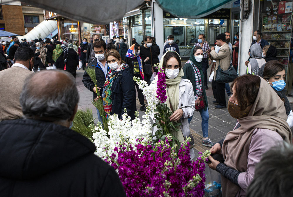 3月18日,人们在伊朗德黑兰一处市场内购买鲜花。(新华社发,艾哈迈德·哈拉比萨斯摄)