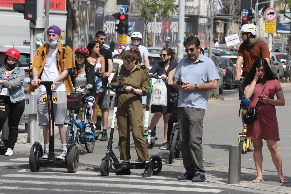 4月18日,人们在以色列中部城市特拉维夫街头出行。(新华社/基尼图片社)