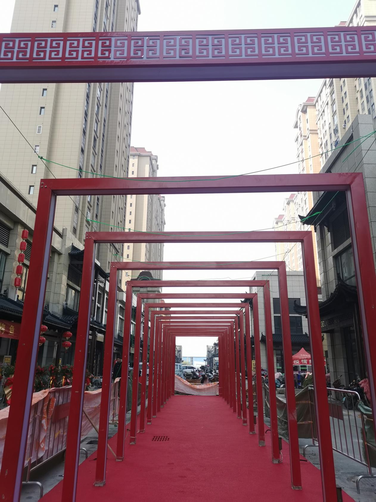 古朴的石磨流水槽、仿古店面门头、红色灯笼、精美的油纸伞,处处弥漫着古色古香的韵味,大磨盘羊文化雕刻、18米长的中国红羊主题时光隧道,凸显了丰县的“羊食”文化地域特色。二期工程于12月初动工,整个工程预计在春节前完成,将此街区打造成为丰县的新亮点、人们夜间消费的新去处、传播丰县文化的新途径。