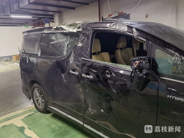而当赵先生赶到车库时,消防人员已经将火扑灭,自己停在小区地下车库的两辆汽车不同程度受损,其中一辆威尔法汽车已经面目全非,车的半边所有车玻璃都炸裂了,车门全部变形,车辆的a柱b柱,包括车顶全部都形变,整个车里面全部都是水,车子基本上可以算报废了。赵先生说,这辆车是去年年底买的,当时花了100多万。