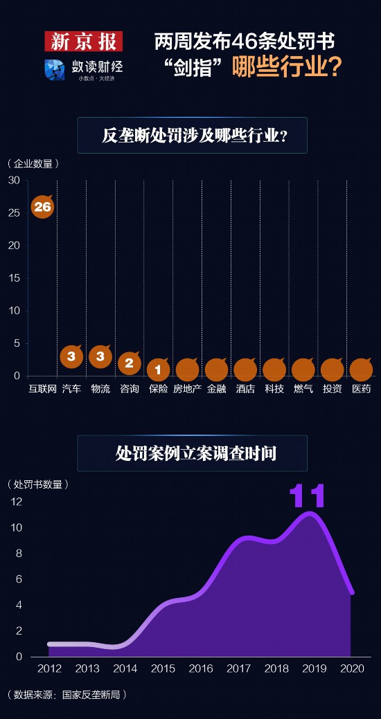 国家反垄断局处罚了哪些行业?