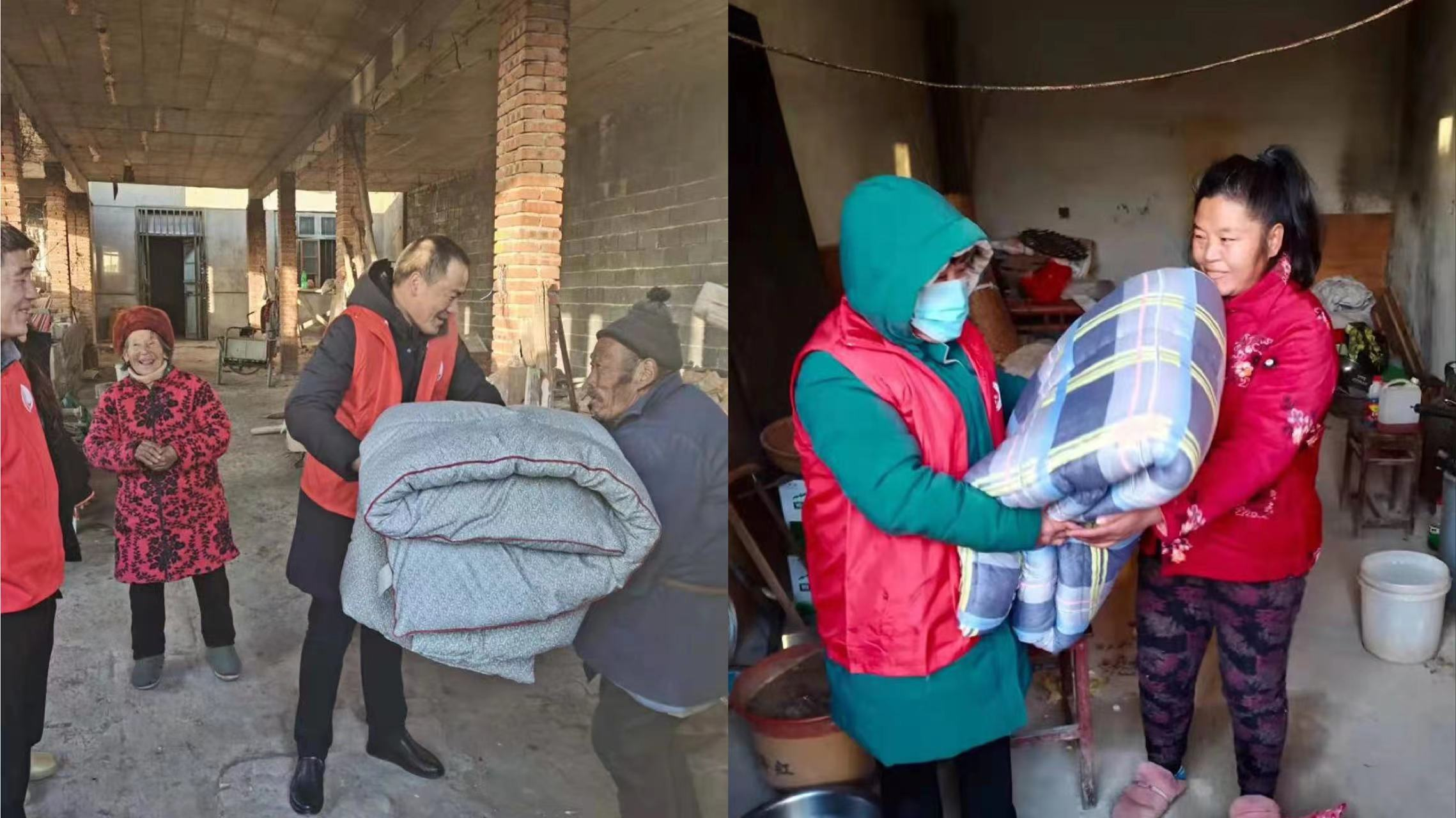 双城村慎兴尚患有精神疾病,母亲去世,与父亲一起生活。双城村党员志愿者主动为他送一床棉被,让这个冬天不在寒冷。“实在太感谢了,解决了我们生活上的困难,让我们在这个冬天更温暖。”老百姓最朴实,心也最明亮,朴实到不需要多么丰富的物质,哪怕是“一条被子”“一桶油”“一句真诚的问候”,也能温暖群众的心。