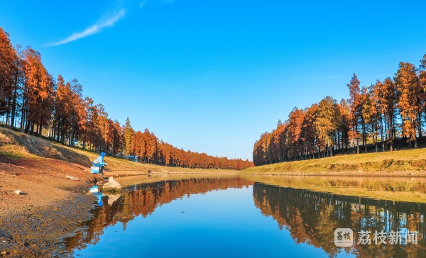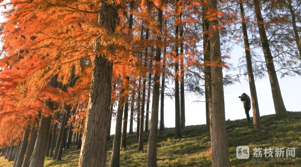 初冬时节水杉红,蓝天碧水生态美,这两天,江苏句容河两侧水杉林换上了红黄的“秋冬装”,进入了最佳观赏期。延绵数公里长的水杉林色彩斑斓,如同油画一般,为冬日增添了一抹亮丽的风景。