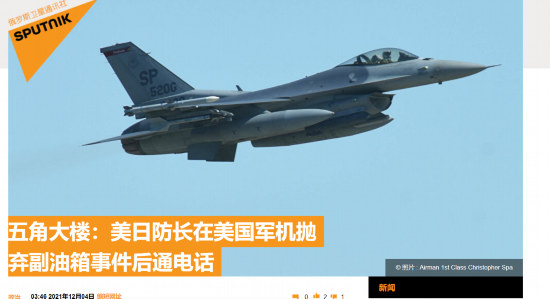 【环球网报道】俄罗斯卫星通讯社3日消息,美国五角大楼发言人对俄新社表示,在发生美国F-16战机遇故障抛弃燃料罐事件后,美日两国军方关系趋紧,在此背景下,美国国防部长奥斯汀与日本防卫大臣岸信夫进行通话会谈。