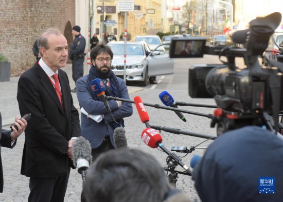 12月3日,在奥地利维也纳,欧盟对外行动署副秘书长莫拉(左一)在伊朗核问题全面协议联合委员会政治总司长级会议后接受采访。新华社记者郭晨摄