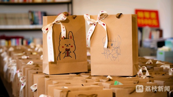 图:“暖心加油包”上是手绘图案和写满祝福语的蝴蝶结