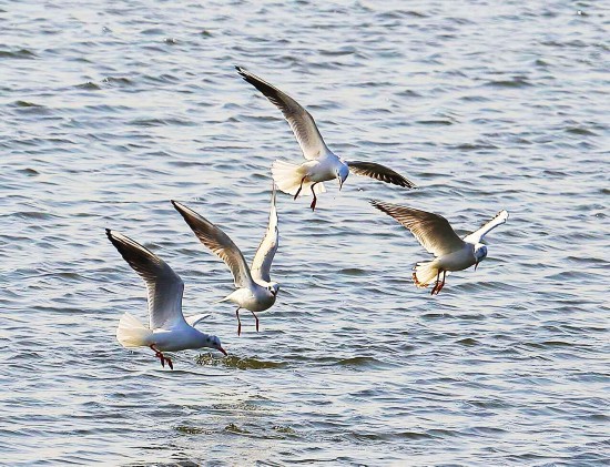 省级湿地保护区花鱼塘,成片的鱼塘面积非常大,来这里的鸟儿数量非常多。有时一个鱼塘全是鸟儿,成千上万,一眼望去,非常壮观。冬季红嘴鸥大部队来扬州,仅仅在花鱼塘湿地公园就有2000只栖息、觅食。
