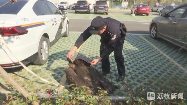 谁也不能确定这只大鸟属于什么物种,是否会有危险,大家就把这只鸟交给了民警。天生港派出所民警陈俊在网上搜索了一下,初步确定这只鸟是秃鹫,属于二级保护动物。