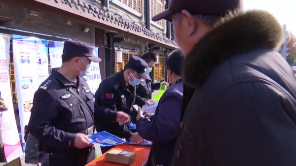 同样,在淮安市文庙广场,各机关单位的志愿者队伍也参与进来,给市民提供了政策咨询、法律援助等多种多样的志愿服务。淮安市公安局清江浦分局的民警也来到现场,结合实际案例向市民宣传了防诈骗知识。