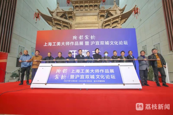 我苏网讯 12月6日,《陶都紫韵·上海工美大师作品展》在美丽的太湖西岸宜兴市博物馆开幕,13位上海市工艺美术大师、17位上海星锐工艺美术大师的紫砂作品首次在陶都集体亮相,中国工艺美术大师李遊宇、葛军、蒋国兴也有作品参展。本次展会展示的海派紫砂艺术创作新动向、新时尚和新成就,引发业内外关注。