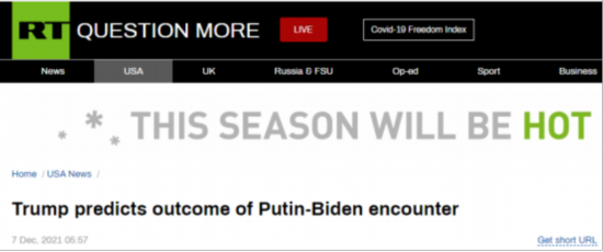 今日俄罗斯:特朗普预测普京与拜登会谈的结果