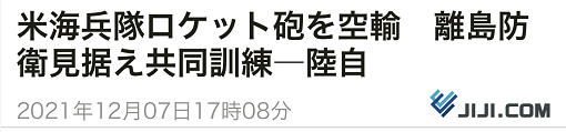时事通讯社:美国海军陆战队火箭炮被空运,陆上自卫队和其举行离岛防卫共同训练