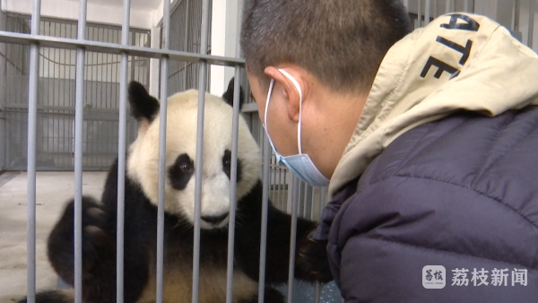 一大早,扬州茱萸湾动物园的熊猫奶爸蒋峰就忙着给两只国宝熊猫“月亮”和“捞捞”进行体检。临近寒冬,常态化监测熊猫的身体指标成了他工作的重中之重。放眼整个动物园,两只国宝熊猫的住所显然是顶配,除了舍间内安装有地热、挂暖,馆内还有玻璃屋顶,甚至连竹子都用上了喷淋系统随时保持新鲜。冬日暖阳让它们食欲大开,你看,它们一只靠着室内栏杆“咔咔”地啃竹子,另一只吃饱了爬上室外的栅栏,在暖暖的阳光下慵懒地打着盹,一副悠然自得的模样。