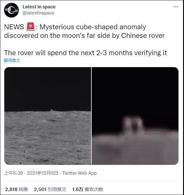 “神秘小屋”还引发了国外网友的兴趣,名为“Latest in space”的天文资讯账号在社交媒体发布“神秘小屋”的消息,获得了超1.6万个点赞。