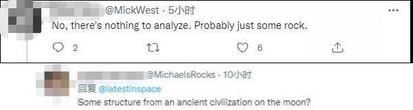 有国外网友猜想:“月球上古代文明的建筑?”也有网友认为“只是石头而已”。