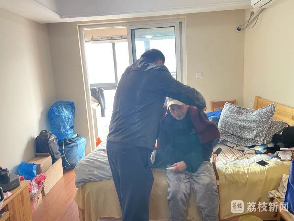 除此之外,社工还陪同社区负责人挨个上门,给困难老人也送上一份冬日温暖。“这围巾戴着真暖和真好看,让你们费心了,这么忙还给我们织围巾。”66岁的困难残疾老人夏阿姨系上大红围巾,开怀大笑地说。