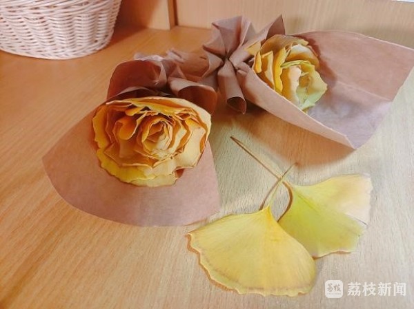 “阿姨您好!这是我们用银杏叶为您做的玫瑰花,感谢阿姨每天为我们打扫卫生!”昨天(12月5日)清晨六点,扬州大学外国语学院的一群学生穿梭在文津楼的各个楼层,将自己亲手制作的银杏“玫瑰”送给正在辛勤工作的阿姨们。