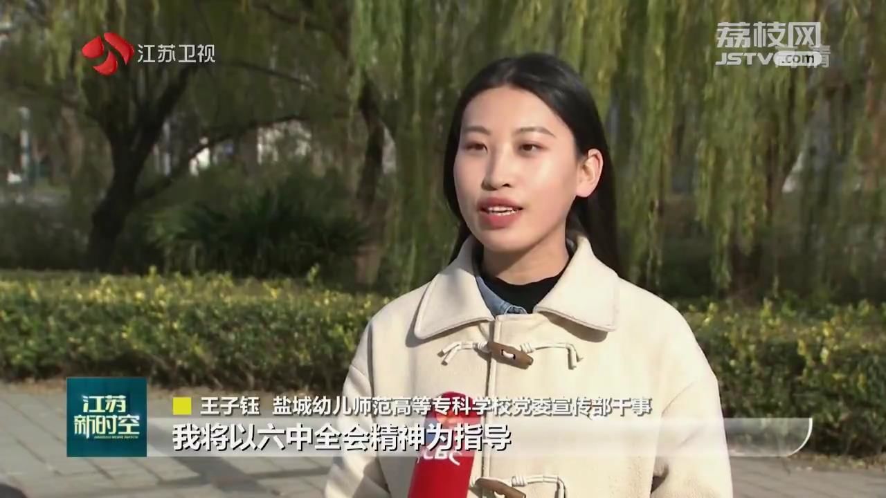 盐城幼儿师范高等专科学校党委宣传部干事王子钰说:“作为一名高校新闻宣传工作者 ,我将以六中全会精神为指导,坚持以习近平新时代中国特色社会主义思想为引领,激励广大学子争做担当民族复兴大任的时代新人。”