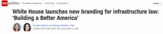 报道援引一位白宫官员话称,“建设更美好美国”口号的应用场景十分广泛,在总统拜登、副总统哈里斯或其他美国官员前往全美各地宣传该基建法案时,都将用到这一口号。
