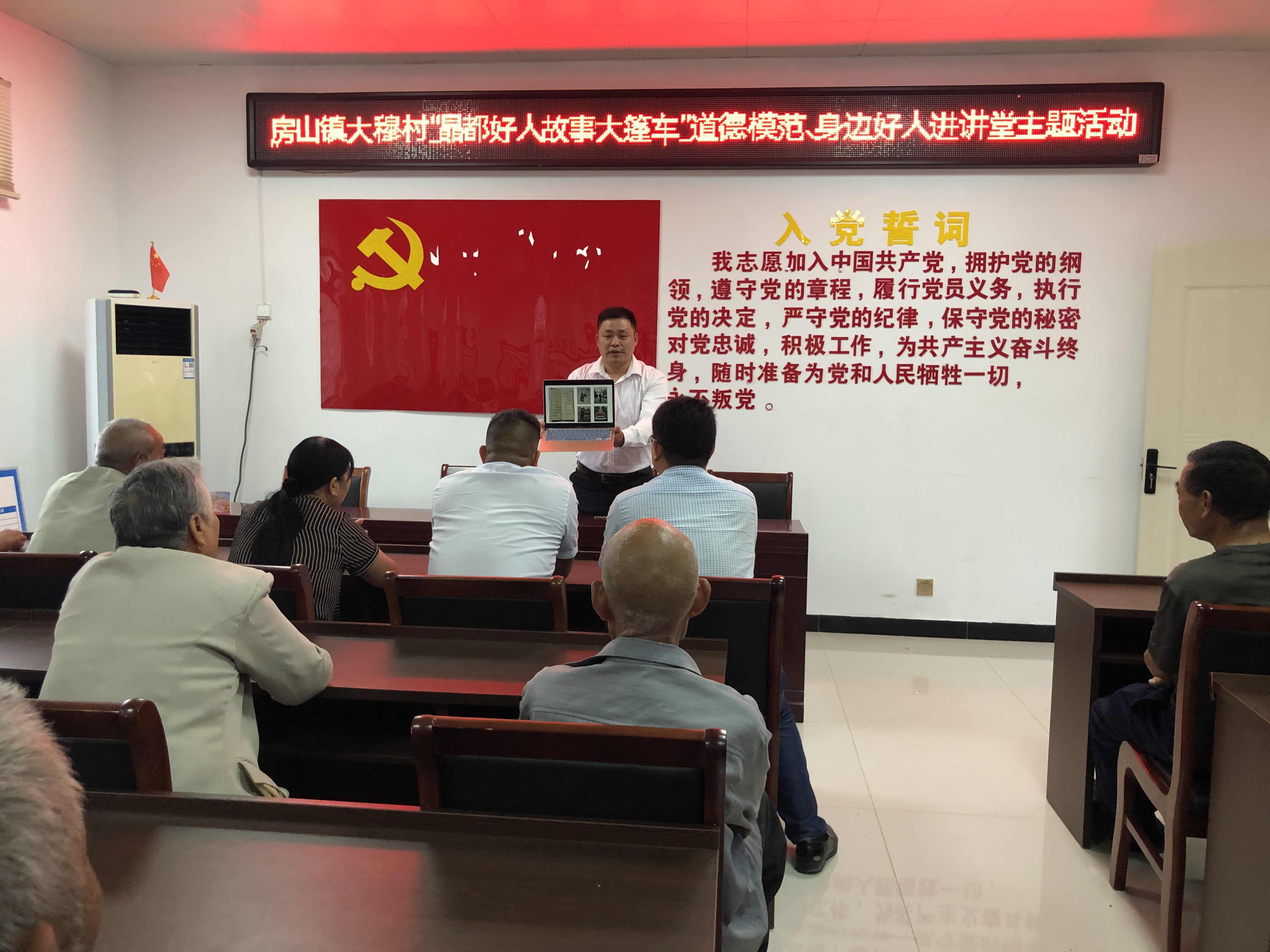理论宣讲入脑入心 该镇从脱贫攻坚模范、疫情防控志愿者、乡村振兴带头人等群体中选出一批具有代表性的人物,组织党员干部群众聆听他们的“初心故事”。组织党史学习教育宣讲团进企业、进村庄开展理论宣讲活动,进一步扩大党史学习教育的受众面和覆盖面。同时,组织房南村党员干部、中学生在村道德讲堂开展“四史”学习教育宣讲活动,宣讲人结合“我为群众办实事”、“乡村振兴、富民兴村”等方面,与大家交流讨论。此外,邀请吕祥璧烈士陵园管理员刘华成走进大穆村,开展“晶都好人故事大篷车”道德模范、身边好人进讲堂主题活动,刘华成深情并茂地讲述吕祥璧舍己救人的英雄事迹和刘步云、刘华成父子坚守岗位的感人故事,让大家深切感受到在平凡的岗位上做出不平凡业绩的艰辛和伟大。