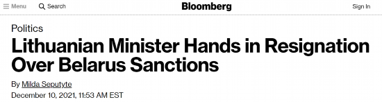 美国彭博社消息,立陶宛外交部长兰茨贝尔吉斯12月10日已正式提交辞呈。此前有批评声称,在美国等国针对多家白俄罗斯企业实施的制裁后,立陶宛未能阻止白俄罗斯钾肥运输。