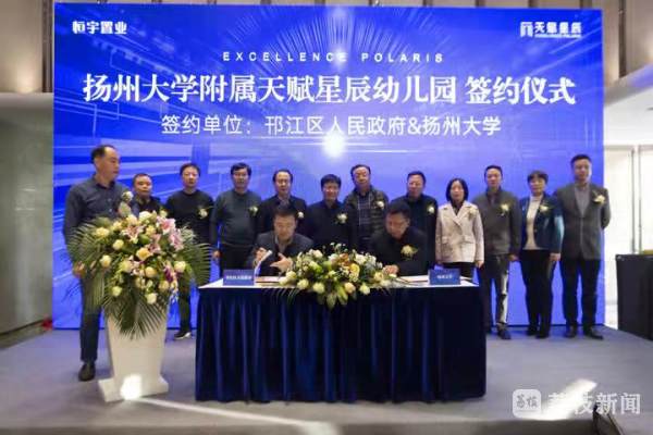 我苏网讯 12月10日下午,扬州大学附属天赋星辰幼儿园签约仪式举行。新签约的扬州大学附属天赋星辰幼儿园设计为4轨12个班。