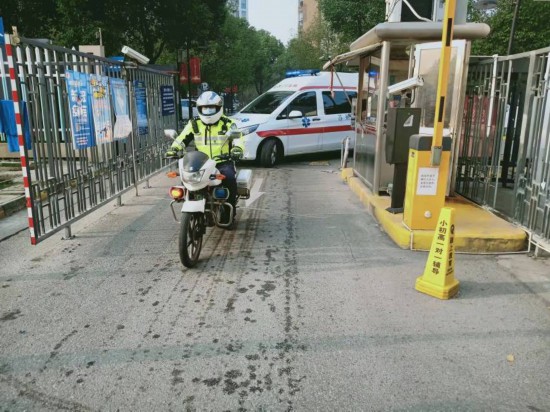 事发当时,正在执勤的姑苏交警王旭看到急救车在小区附近被堵,赶紧主动联系社区书记,确认了患者的具体位置,第一时间与社区、物业联动,安排铁骑在前面开道。
