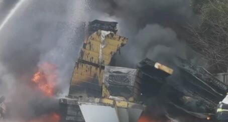 由于车上的货物较多,救援人员无法将内部的火扑灭。高速交警调集拖车和挖掘机,将事故车辆分离,并对货车上的货物进行清理。经过3个多小时的紧张扑救,大火被扑灭。
