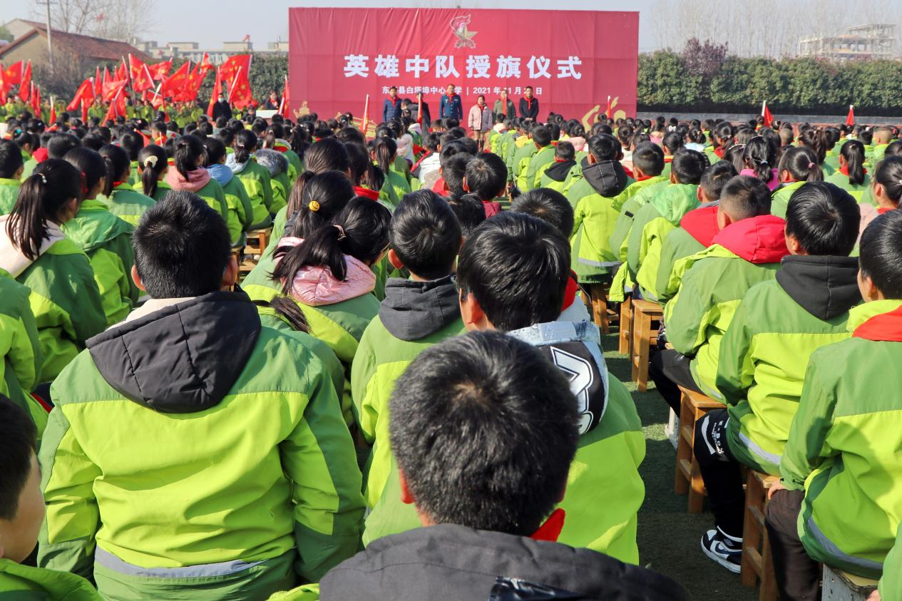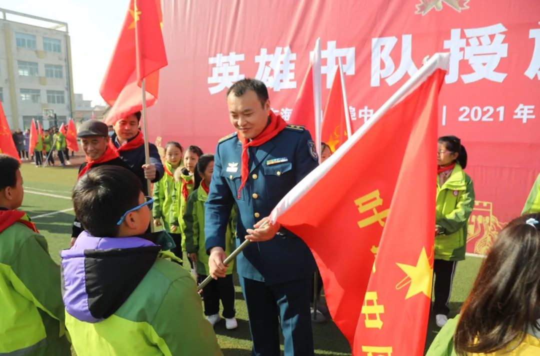 日前,东海县白塔埠中心小学结合党史学习教育,为全校51支英雄中队进行了授旗仪式,旨在更好地传承英雄精神,高举队旗跟党走。