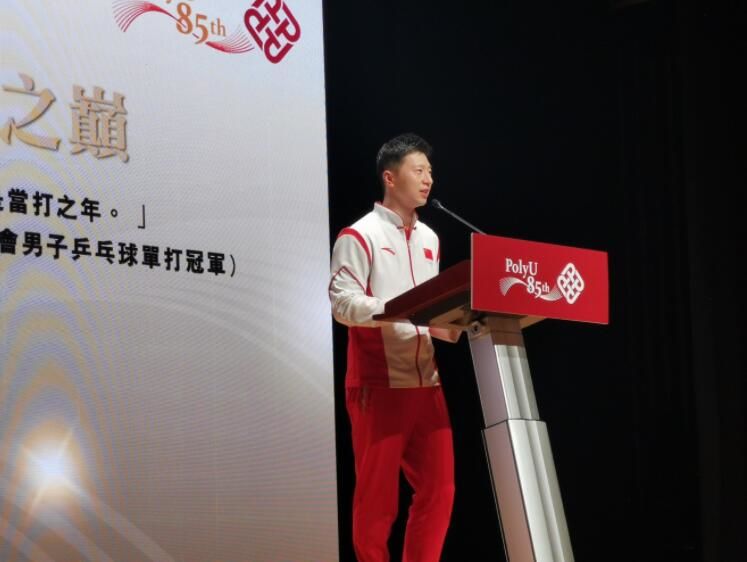 2021年12月5日,香港理工大学报告会,马龙向在场师生讲述自己的故事。