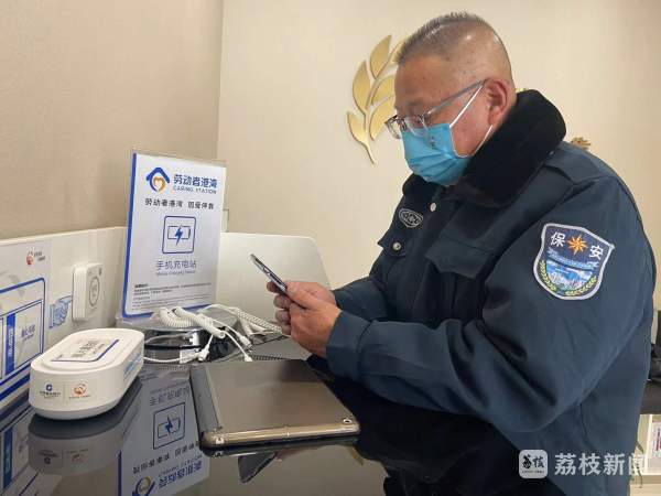 在中国建设银行南京城东支行的劳动者港湾里,停车场保安曹师傅正坐在沙发上一边喝茶一边看书,享受着午休的闲暇。“不忙的时候可以进来歇一歇,像我这眼镜脏了,它里面还能免费清洗。还有洗手液、还有酒精什么的,细节方面比原来增加了不少,这个‘劳动者港湾’确实给我们务工人员办了一件很好的实事。”曹师傅对这里提供的暖心服务,感到很满意。
