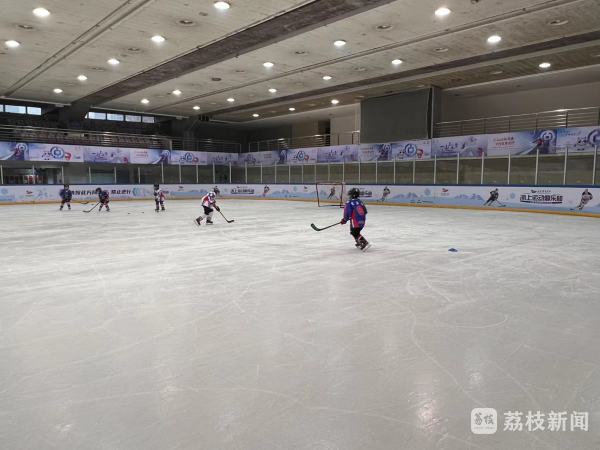 在具备奥运标准的南京奥体中心滑冰馆,1800平冰场被分成两个部分。半幅场地中,三四十名小学生正分成三拨在接受专业的冰球教学。前来体验滑冰的市民占用了另半幅场地,双方“泾渭分明”。但从滑行的速度和流畅度来看,无疑是小学生们更胜一筹。