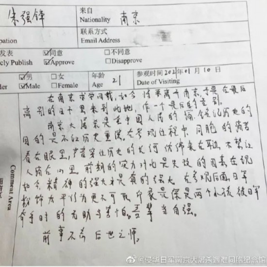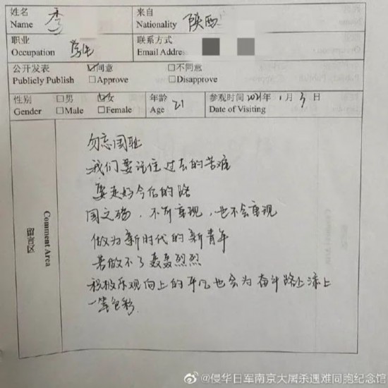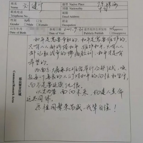 遇难同胞纪念馆留言区