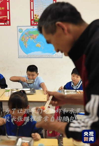 河南周口太康县清集镇二郎庙小学中大多是留守儿童,平时在学校吃午餐。为了让孩子们吃得更好些,校长张鹏程每天清晨去集市采购食材,在国家餐补的基础上,时常自掏腰包,虾、牛肉等每周都能出现在孩子们的餐盘中。在学校的这顿午餐,成为不少孩子一天中吃得最好的一顿。