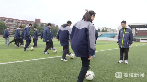 南师附中新城小区南校区为了保障学生在校阳光体育锻炼一小时,这学期外聘了两名足球教练,每班每周上一节足球课,下午课后服务时间,还开设足球、篮球、体育舞蹈、击剑、冰球等体育社团。