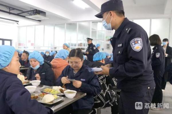 “杭集镇是全国著名的牙刷小镇,各类大中小型企业众多,务工人员占比较大,年关将近,为了帮大家守住一年到头的辛苦钱,不让犯罪分子有机可乘,我们利用就餐间隙,通过这样喜闻乐见、灵活机动的方式,见缝插针地开展反诈宣传,送上一份特别‘加餐’,切实提高务工人员识骗、防骗的能力。”生态科技新城公安分局党委委员、副局长黄国庆这样说道。