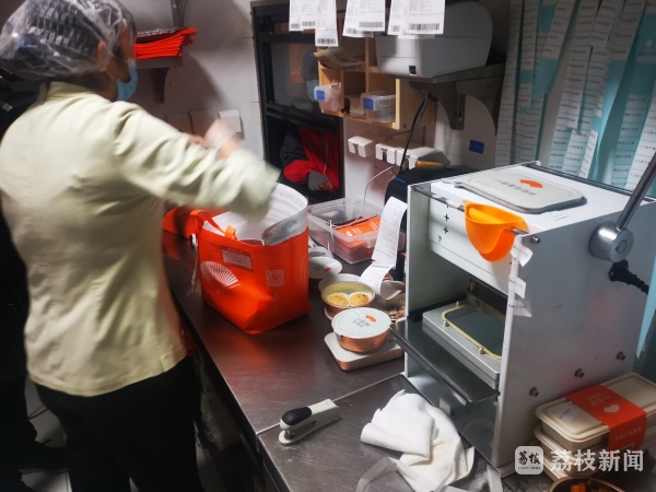 在南京一家商业综合体内,记者看到不少外卖商家对食品进行打包后都会张贴一份自制封签。而除了这种外卖封签,不少商家还会使用铝箔材质的打包餐盒,盛满食物后自行密封。