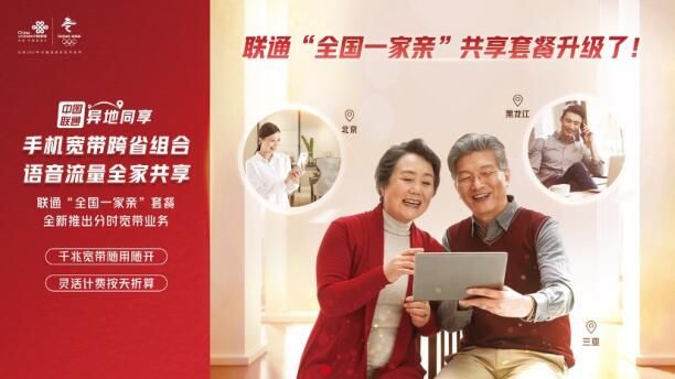 什么样的服务,可以让父亲不必顶着风雪出门;什么样的技术,可以让母亲畅所欲言,不再因为“流量、语音时长”而不敢唠叨?中国联通“全国一家亲”组合套餐可以在不更改原有自用套餐的基础上,将父母和子女的手机、宽带等业务的任意组合,一人缴费全家使用。子女身在外地,也能通过服务帮助父母解决话费、宽带费用缴纳问题,不必让父母为外出缴费烦恼。同时,套餐内亲友间还享有语音通话免费的服务,从此妈妈聊天再也不用担心语音流量不够,匆匆挂断电话了。