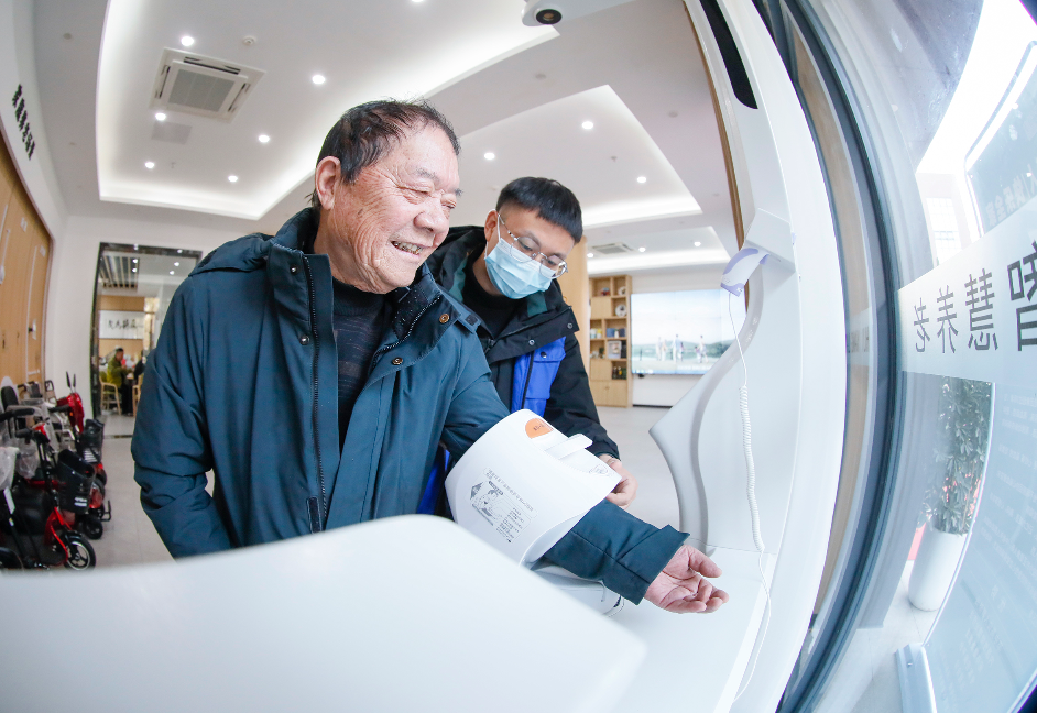 12月9日下午两点,83岁的万维祥和往常一样来到江苏盐城东台市的城市社区智慧养老服务中心,一键测量血压、血氧、脂肪含量……仪器显示正常。随后,他精神抖擞地和艺术团一起给现场的老年人带来精彩的戏曲演出。