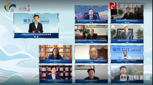 作为2021长江文化节重要活动之一,12月15日,“最美风景在路上”系列大型线上直播——“聚焦长江 高峰对话”文化和旅游创新发展论坛暨长江文化高层论坛“云”上开幕。文化和旅游部政策法规司、中国文化传媒集团、中央文化和旅游管理干部学院等领导,长江流域13个省市文化和旅游厅(局)代表,中国工程院、社科院专家、高校教授、国内大型文旅企业等领导嘉宾出席了本届论坛,掀起头脑风暴。嘉宾人数、举办规模创历届之最。