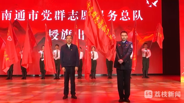 启动仪式上,南通市委常委、组织部长封春晴为南通市党群志愿服务总队授旗,全国青年文明号——南通市公安局交警支队青年路工农路口执勤岗副号长王兰勤上台领旗。