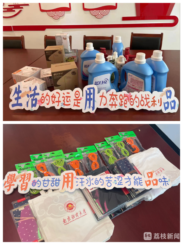 这份福袋包含手帕纸一条、印有南财logo的帆布包一个,以及可供学子们自行选择的学习用品与生活用品各一份,南财工商管理学院希望学生们能带着学院的祝福继续前行。同时,还有匿名校友为特殊困难学生捐赠的羽绒服,伴他们度过寒冷冬天。