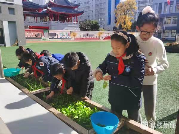 南京夫子庙小学利用教学楼顶开辟天空农场,作为劳动教育实践基地。每天下午课后服务时间,同学们在天空农场进行植物管养,观察记录植物生长的变化。