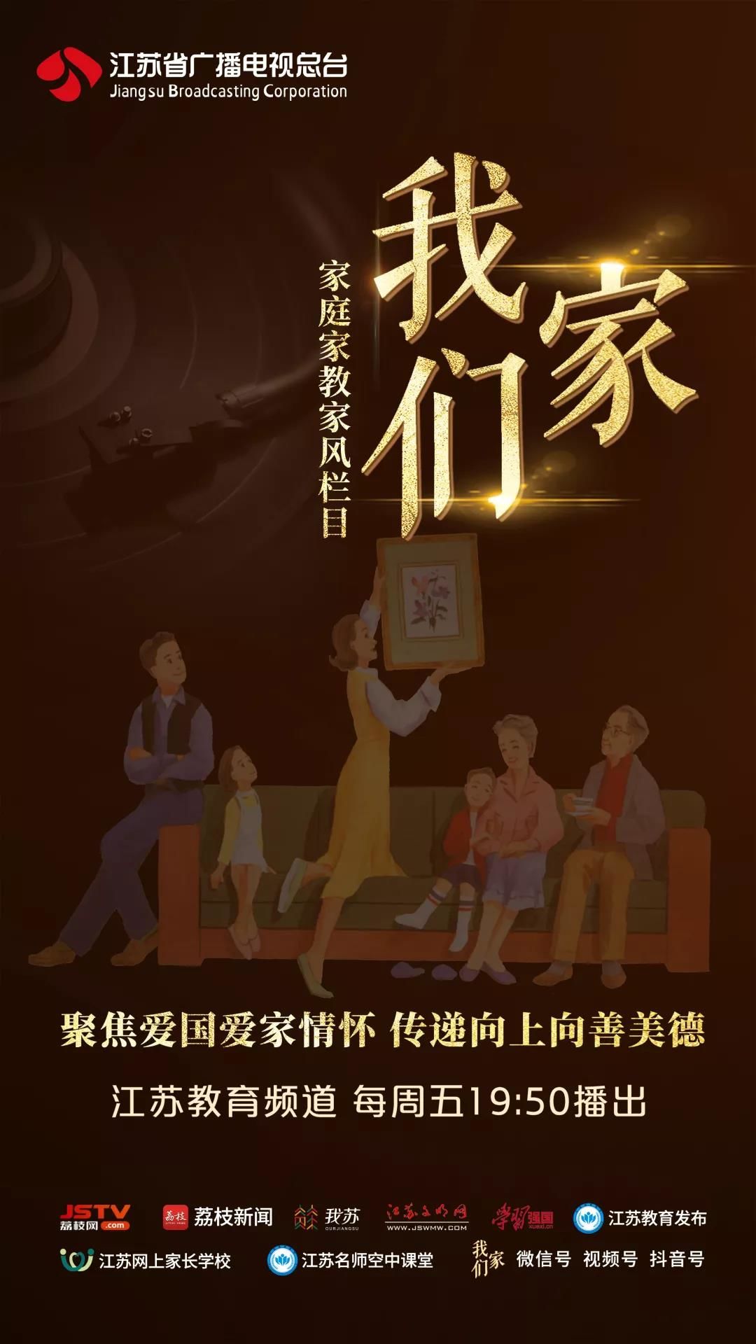 聚焦爱国爱家情怀,传递向上向善美德。由江苏省文明办、江苏省教育厅、江苏省妇女联合会、江苏省广播电视总台共同主办,省广电总台教育频道具体承制的《我们家》栏目,每周五19:50在江苏教育频道播出。