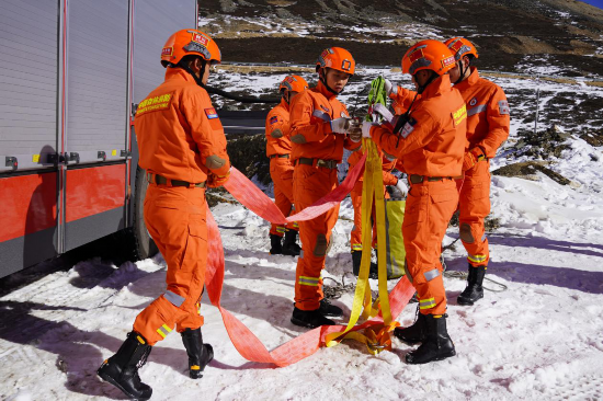 “甘孜遭遇50年一遇的极端寒潮天气,低温!暴雪!冰冻!318进藏的第一关——折多山段道路面结冰,众多车辆人员受困!上级命令我们立即出动!”12月16日,随着一声令下,四川省森林消防总队甘孜支队组织的一场应急演练就此展开。