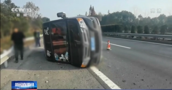 这是近日发生在樟吉高速江西峡江境内的一起事故,事发当时,这辆满载货物的轻型封闭货车后轮突然爆胎,车子失控甩尾,撞向应急隔离护栏旋转一圈后侧翻。