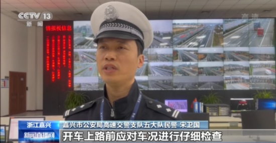 嘉兴市公安局高速交警支队五大队民警 宋卫国:开车上路前应对车况进行仔细检查,特别是轮胎等车辆易损耗部件,及时更换老化磨损严重的轮胎。