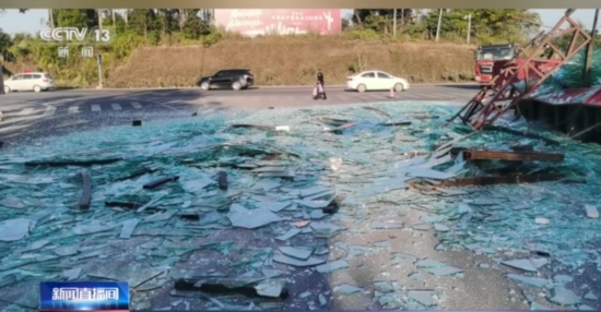 经调查,事发当天,李某拉载了30多吨玻璃从北海开到钦州,在车辆左转进入这一路口时,由于用于捆绑玻璃的绳子松动,导致车上的玻璃掉了下来,散落的玻璃占据了大部分路面,所幸当时此处没有其他车辆和行人,未造成其他严重后果。