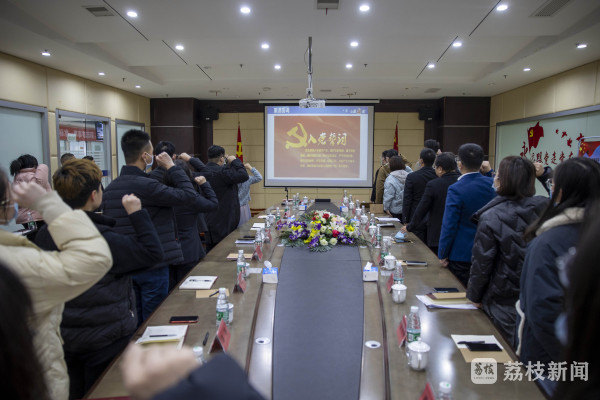 我苏网讯 参观“四同八助”党建文化展览、观看“奋进新征程”网络公开课、新党员交流思想、全体党员重温入党誓词……12月15日,泰州市互联网行业“主题党日”活动在泰州医药高新区(高港区)泰盈科技有限公司举行。泰州市委网信办党员代表,数据产业园区挂钩党建指导员,泰盈科技公司全体党员、发展对象、入党积极分子及部分职工代表等100多人参加互联网行业主题党日活动。